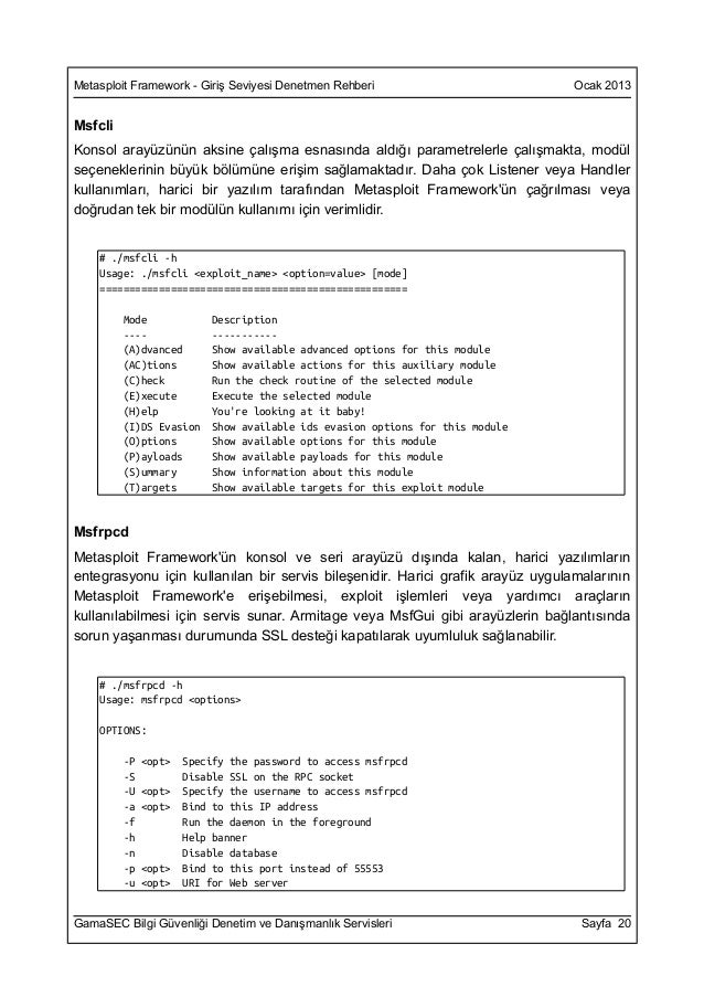 Metasploit Framework,GamaSEC Bilgi GüvenliÄi Denetim ve DanıÅmanlık Servisleri Sayfa ; .,Metasploit Framework,GamaSEC Bilgi GüvenliÄi Denetim ve DanıÅmanlık Servisleri Sayfa ; .
